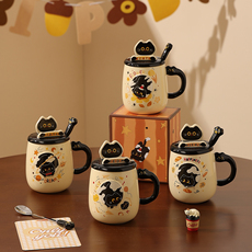 舍里可爱猫咪杯子家用喝水马克杯带盖早餐杯陶瓷办公室水杯咖啡杯