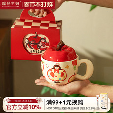摩登主妇陶瓷带盖马克杯生日礼物马年杯子女新年本命年水杯咖啡杯