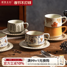 墨色复古咖啡杯碟高档精致陶瓷拿铁拉花杯子创意粗陶高级感马克杯
