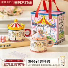 摩登主妇旋转木马陶瓷马克杯带盖水杯生日马年礼物新年杯子咖啡杯