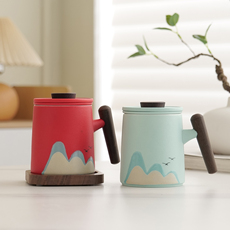 摩登主妇赫拉兔泡茶杯茶水分离陶瓷马克杯带盖办公室水杯子咖啡杯