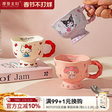 摩登主妇三丽鸥儿童水杯家用杯子陶瓷马克杯可爱早餐杯刻度牛奶杯