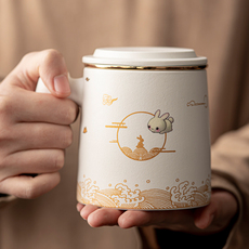 山海行带盖过滤泡茶杯办公室茶杯马克杯家用陶瓷水杯茶水分离杯子