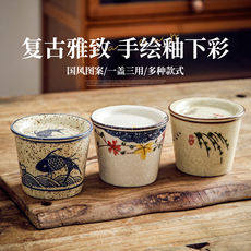 日式茶杯陶瓷杯子中式主人杯茶具套装带盖品茗杯水杯复古煮茶单杯