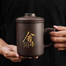 紫砂茶杯主人水杯定制家用大号带过滤陶瓷个人专用办公泡茶杯刻字