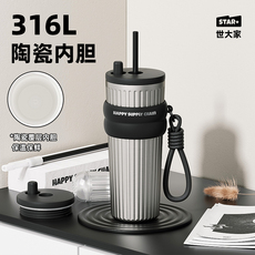 世大家大容量吸管保温杯高颜值女生陶瓷内胆水杯便携新款咖啡杯子