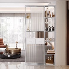 轻奢铁艺屏风隔断柜现代简约进门装饰柜鞋柜玄关柜一体客厅酒柜
