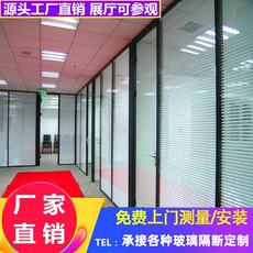 广州深圳办公室玻璃百叶隔断墙铝合金钢化磨砂透明单双玻璃高隔断