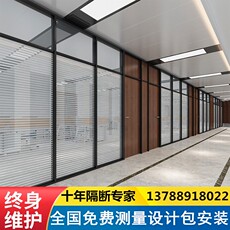 办公室玻璃隔断墙铝合金百叶高隔断广州深圳双层钢化磨砂高隔间墙