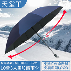 天堂伞特大号雨伞十骨全钢加大加固三折叠黑胶晴雨两用男士女学生