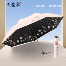 天堂伞黑胶太阳防晒女小清新森系遮阳伞防紫外线三折叠晴雨伞两用