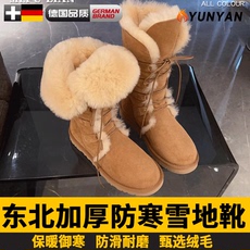 德国厚底雪地靴女2025冬季新款加绒加厚东北大棉鞋系带中筒毛毛棉
