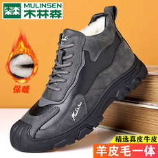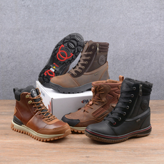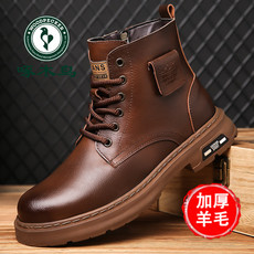 意尔康男鞋秋冬新款真皮百搭休闲马丁靴男士加绒羊毛保暖雪地棉鞋