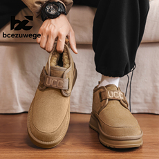 UG款包头一脚蹬棉鞋男女舒适休闲雪地靴半拖翻毛皮潮流保暖乐福鞋