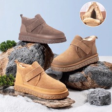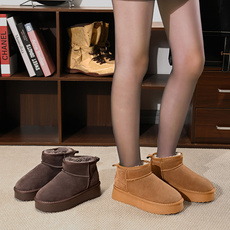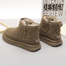真皮雪地靴男短靴2025冬新款皮毛一体加绒厚底羊毛东北保暖大棉鞋