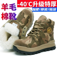 东北冬季零下40度超轻厚底防寒靴男纯羊毛雪地靴防滑户外迷彩棉鞋