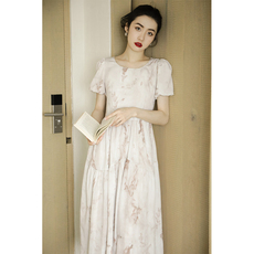 新款 套装盐系轻熟装高级感气质百搭印花连衣裙雪纺常规袖