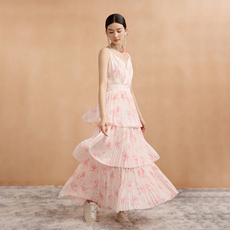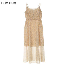SOMSOM/索玛吊带连衣裙女春秋季宽松内搭打底V领雪纺印花长裙裙子