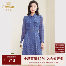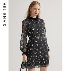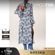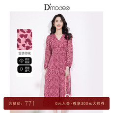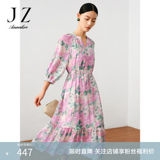 玖姿安娜蔻休闲X型雪纺印花连衣裙秋季款