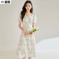 经典故事法式薄款雪纺裙女2025夏季新款淑女气质荷叶袖印花连衣裙