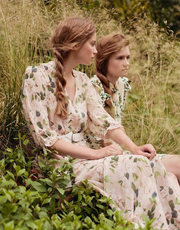 美妃雪纺印花仙女早春新款气质长袖法式绿花连衣裙长款2023夏薄款