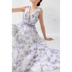 播商场同款无袖印花雪纺连衣裙女25夏日新款温柔长裙BDS2LD2585