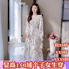 女装秋装小个子加小码XXXS小号150cm显高雪纺印花连衣裙V领碎花裙