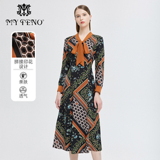 Pink Mary粉红玛琍连衣裙女秋冬气质雪纺后拉链印花裙子PMAMW5575