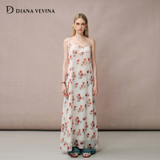 DIANAVEVINA2025夏季新款吊带连衣裙女时尚印花裙子雪纺长裙