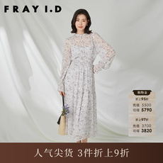 FRAY I.D春夏优雅气质罗纹收腰雪纺印花连衣裙FWFO231050