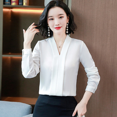 气质OL雪纺V领长袖衬衫女士西装内搭小衫显瘦翻领上衣 职业打底衫