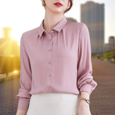 衬衫女士长袖2025春秋新款女装显瘦雪纺上衣妈妈气质大码职业衬衣