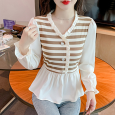 早秋假两件女装2026春新款时尚洋派长袖衬衫T恤女士显瘦雪纺0105e