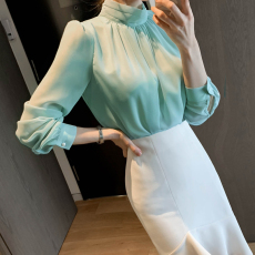 绿色雪纺衫长袖上衣漂亮女秋季衬衫2025新款洋气内搭洋气小衫