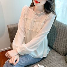 蕾丝打底衬衫女内搭洋气高级感别致漂亮小衫早秋甜美雪纺花边上衣