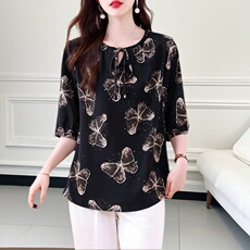 妈妈春夏季雪纺七分袖衬衫新款宽松薄款上衣中老年洋气时尚小衫