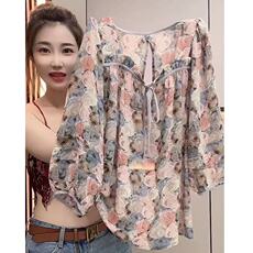 碎花蝴蝶结七分袖雪纺衬衫女春夏季新款别致漂亮小衫宽松减龄上衣