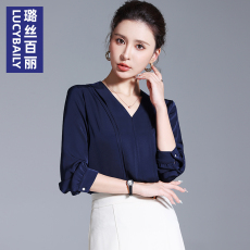 璐丝百丽v领雪纺衫女长袖秋季气质高端职业衬衣洋气小衫时尚上衣