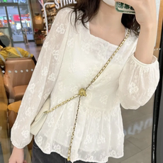 【奥莱】MAXRIENY蕾丝镂空绣花雪纺衫夏季上衣女法式漂亮小衫
