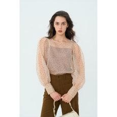 HeyDress法式复古植绒波点雪纺衫女早秋薄款小衫显瘦泡泡袖上衣
