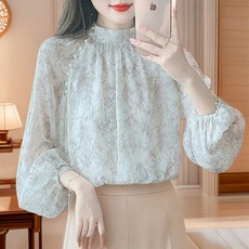 雪纺上衣女士长袖衬衫2025新款秋季气质衬衣妈妈漂亮高贵洋气小衫