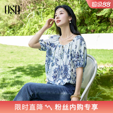 法式刺绣碎花雪纺衬衫女夏季2025新款宽松甜美泡泡袖上衣漂亮小衫