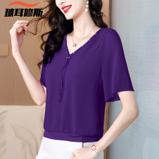 紫米衣坊雪纺衫上衣女夏季新款女装气质洋气显瘦减龄遮肚子小衫