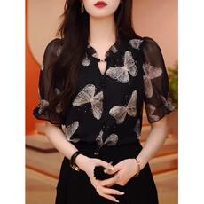 雪纺衬衫女士装夏季2025年新款高端洋气上衣别致小衫短袖t恤衬衣