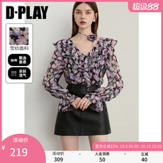 DPLAY2025年秋季新款粉色衬衫女法式气质独特雪纺衬衣长袖上衣