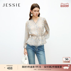 秋水伊人甜美减龄木耳边长袖衬衫女 秋装新款温柔气质洋气雪纺衫