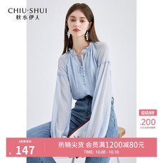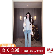 XINYI【雾里看花】秋季喇叭袖花瓣边雪纺衬衫女长袖显瘦百搭上衣