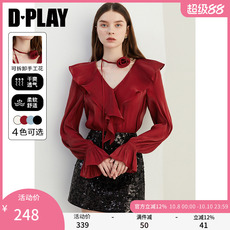 DPLAY2025年秋季新款红色衬衫女时尚气质法式雪纺衫上衣长袖衬衣