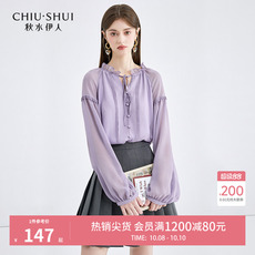 秋水伊人紫色雪纺衬衫女秋装新款法式衬衣爆款长袖上衣木耳边小衫