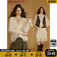 【张艺凡同款】BANANA CICI2025年秋季新款荷叶领雪纺长袖衬衫
